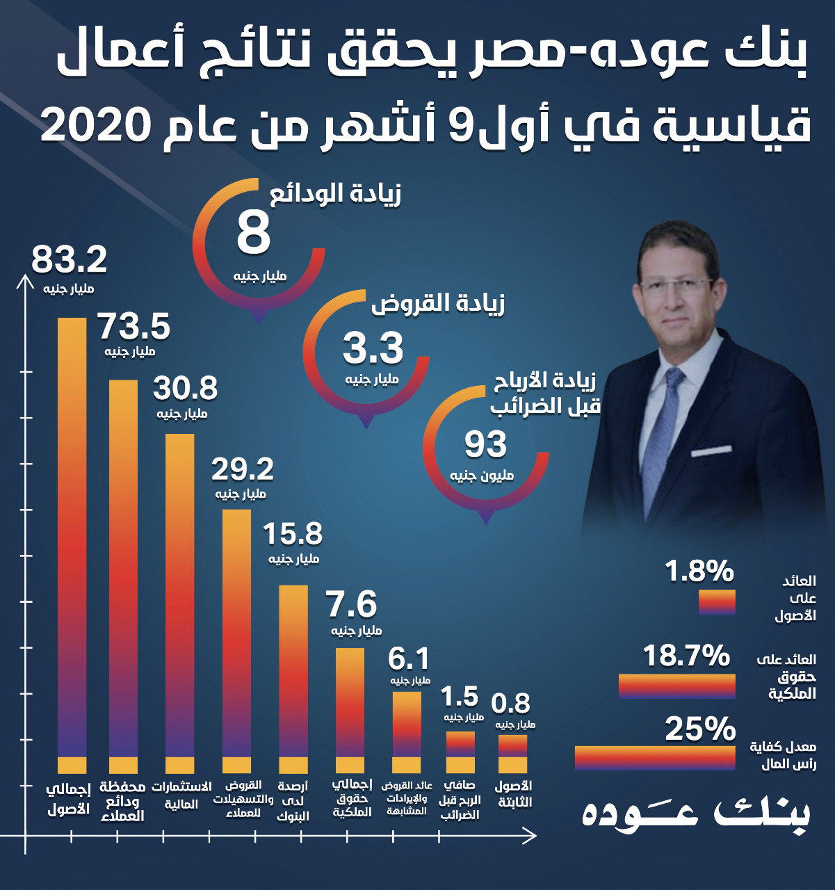 وفى هذا الصدد صرح محمد بدير الرئيس التنفيذي والعضو المنتدب لبنك عوده -مصر: “بالرغم من التبعات السلبية لأزمة كورونا على جميع القطاعات الاقتصادية إلا أن بنك عوده -مصر استطاع تحقيق نتائج أعمال إيجابية، ليؤكد بذلك وجود بنيان مصرفي قوي في السوق المصرفي المصري”.