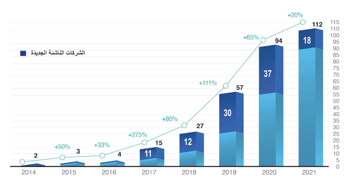 ورصد تقرير “فنتك إيجيبت”، أن عدد شركات التكنولوجيا المالية شهد تطورًا كبيرًا على مدار السبع السنوات الماضية، حيث ارتفع عدد الشركات الناشئة المصرية المتخصصة في التكنولوجيا المالية والمغذية لها لتصل إلى 112 شركة بحلول عام 2021، مقارنة بنحو شركتين فقط في عام 2014، و94 شركة في عام 2020، وتوقع التقرير أن يستمر التزايد الهائل في أعداد الشركات الناشئة خلال الفترة المقبلة.