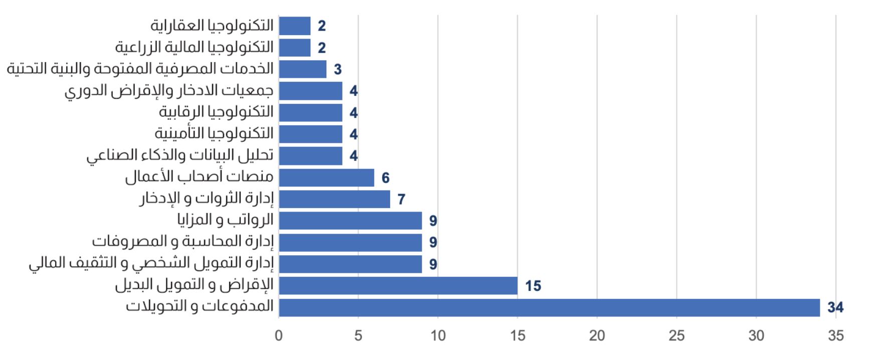 توزيع شركات التكنولوجيا المالية حسب القطاعات:-