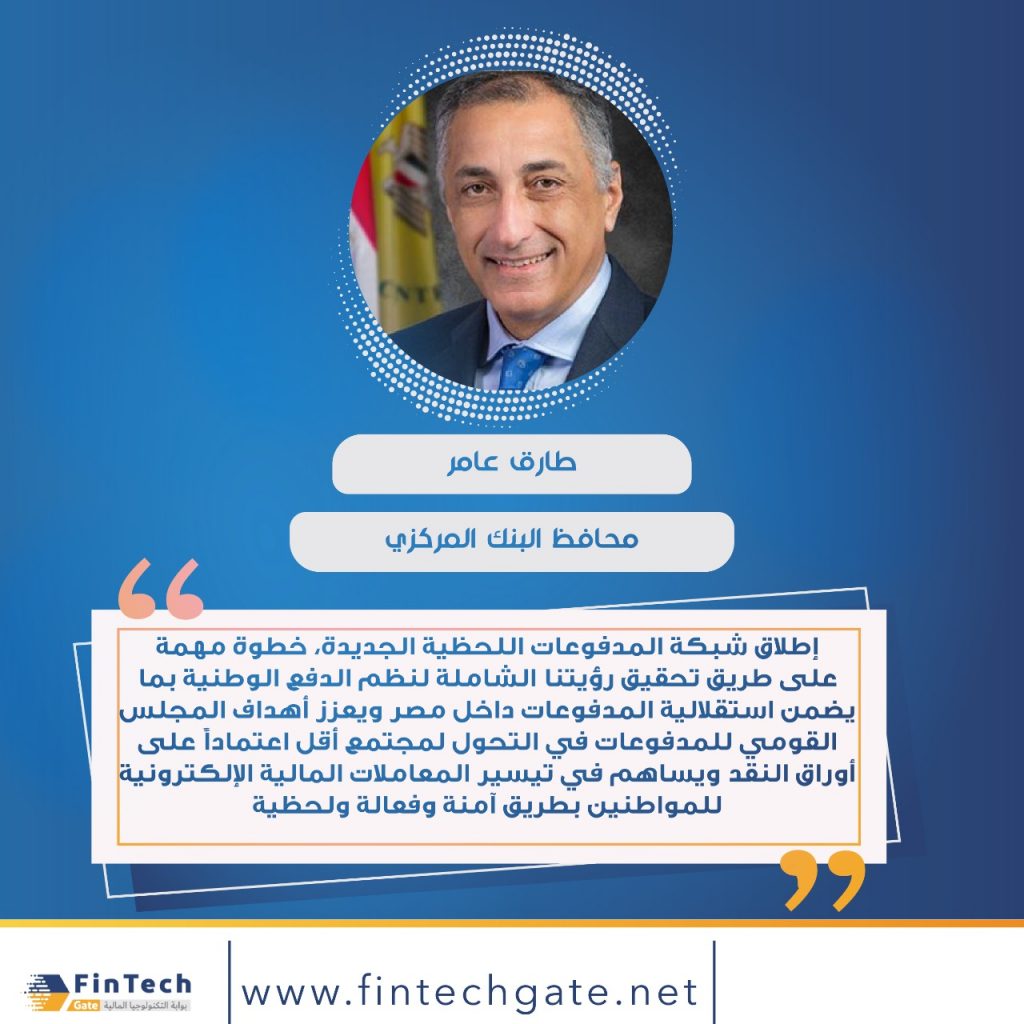 وصرح طارق عامر محافظ البنك المركزي بأن “إطلاق شبكة المدفوعات اللحظية الجديدة، خطوة مهمة على طريق تحقيق رؤيتنا الشاملة لنظم الدفع الوطنية بما يضمن استقلالية المدفوعات داخل مصر ويعزز أهداف المجلس القومي للمدفوعات في التحول لمجتمع أقل اعتماداً على أوراق النقد ويساهم في تيسير المعاملات المالية الإلكترونية للمواطنين بطريق آمنة وفعالة ولحظية”.