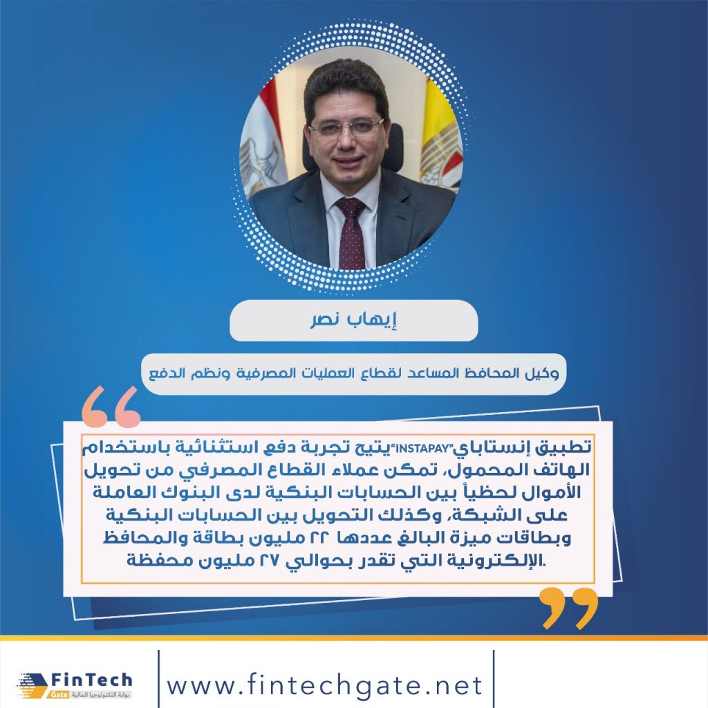 وأكد المهندس إيهاب نصر – وكيل المحافظ المساعد لقطاع العمليات المصرفية ونظم الدفع أن تطبيق إنستاباي InstaPay”” يتيح تجربة دفع استثنائية باستخدام الهاتف المحمول، تمكن عملاء القطاع المصرفي من تحويل الأموال لحظياً بين الحسابات البنكية لدى البنوك العاملة على الشبكة، وكذلك التحويل بين الحسابات البنكية وبطاقات ميزة البالغ عددها 22 مليون بطاقة والمحافظ الإلكترونية التي تقدر بحوالي 27 مليون محفظة.
