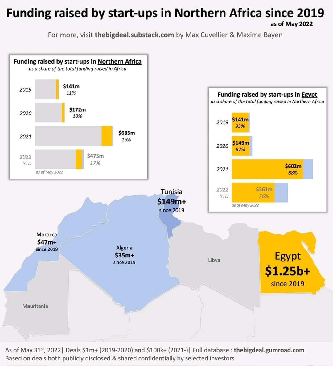 الصفحة الرئيسية إنفوجرافمصر تتصدر شمال أفريقيا في استثمارات الشركات الناشئة بقيمة 1.25 مليار دولار منذ 2019