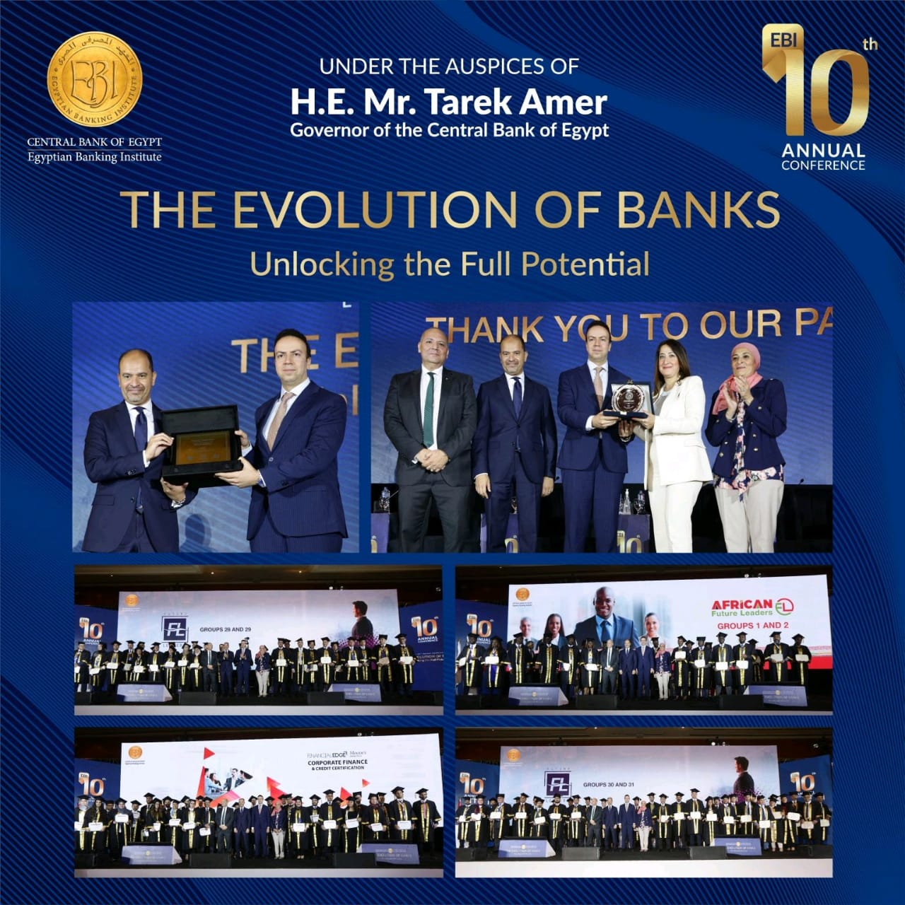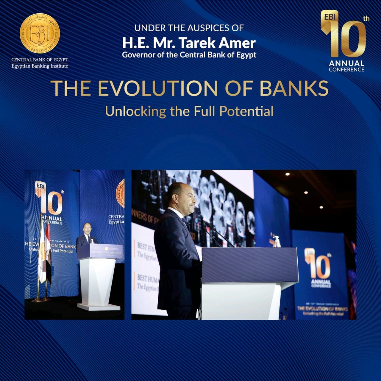 محافظ البنك المركزي المصري ورئيس مجلس إدارة المعهد المصرفي المصري، واحتفالاً بمرور ثلاثين عام على انشاء المعهد، عقد المعهد المصرفي المصري مؤتمره السنوي العاشر تحت عنوان “التطورات المصرفية: نحو آفاق جديدة للقطاع المصرفي” ويتناول المؤتمر على مدار يومين التغيرات التي شهدتها الساحة المصرفية العالمية والمحلية في السنوات الأخيرة؛ بهدف السعي بخطوات متسارعة نحو تطوير جودة الخدمات والمنتجات المصرفية المقدمة والاستمرار في استحداث خدمات وآليات عمل جديدة. وشارك في جلسات المؤتمر عدد من الخبراء من مؤسسات ومنظمات دولية مرموقة، إلى جانب نخبة من خبراء القطاع المالي والمصرفي المصري للاستفادة من تبادل الخبرات الدولية والمحلية في المجالات المصرفية المختلفة.