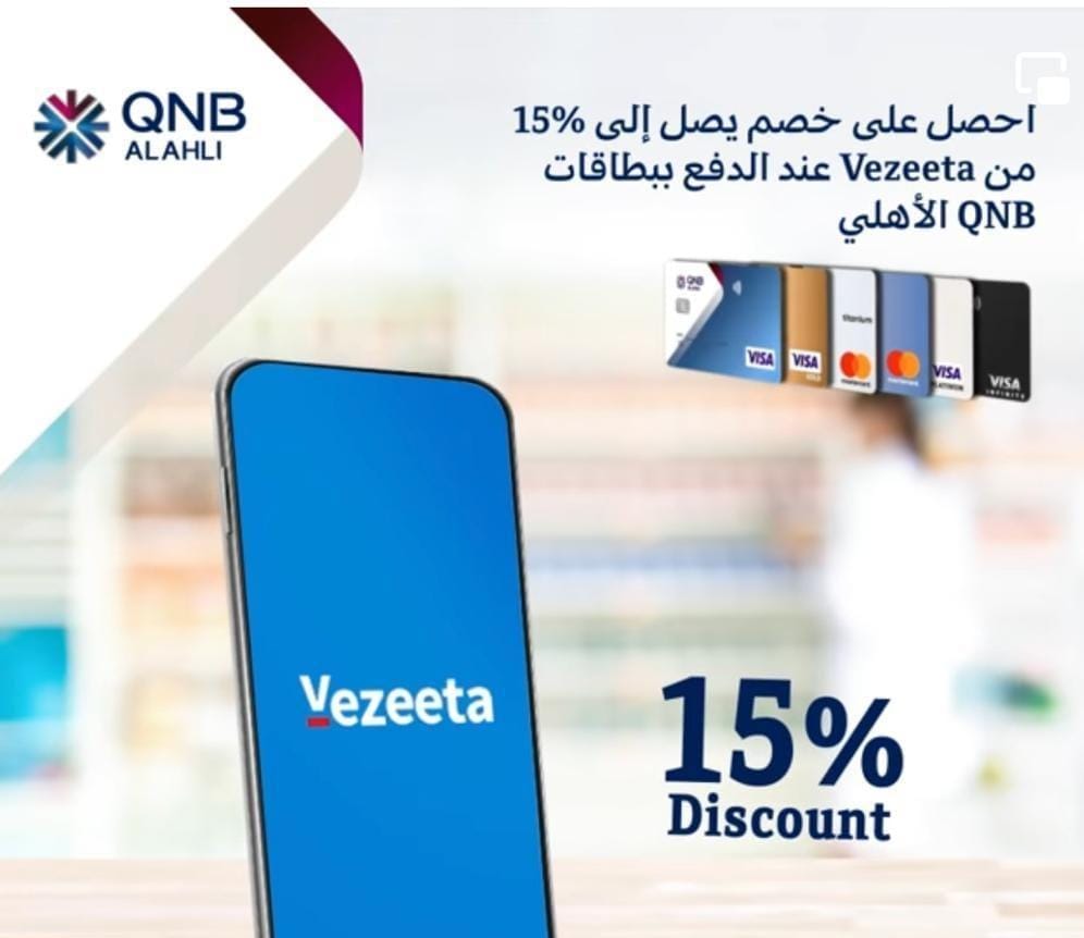 أعلن بنك قطر الوطني-الأهلي (QNB ALAHLI) عن منح خصم يصل الى 15% علي تطبيق Vezeeta عند الدفع ببطاقات QNB .