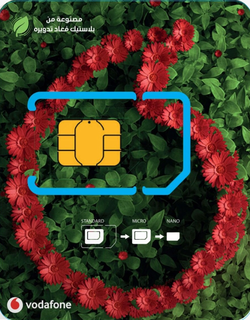 أطلقت شركة فودافون مصر أول شريحة محمول مطابقة للمواصفات البيئية Eco-sim، مصنوعة بنسبة 100% من مواد بلاستيكية مُعاد تدويرها، التي تسعى من خلالها فودافون إلى الحد من انبعاثات ثاني أكسيد الكربون بشكل كبير.