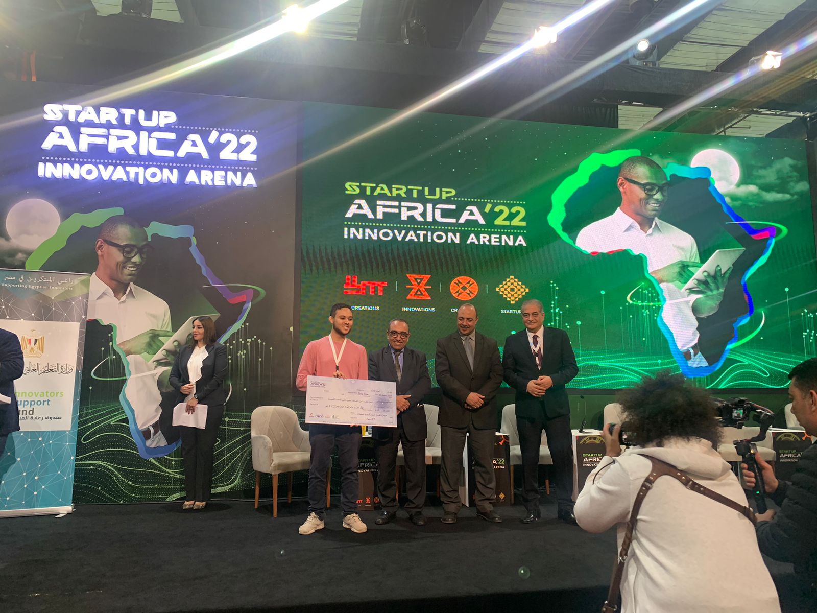 شهد جناح اﻹبداع وريادة اﻷعمال Start Up Africa 22 innovation Arena توزيع جوائز على الفائزين في مسابقات متنوعة جرى تنظيمها بالتعاون بين أكاديمية البحث العلمي وصندوق رعاية المبتكرين، بحضور منظمي المعرض ولجان التحكيم وعدد من المعنيين والمسؤولين.