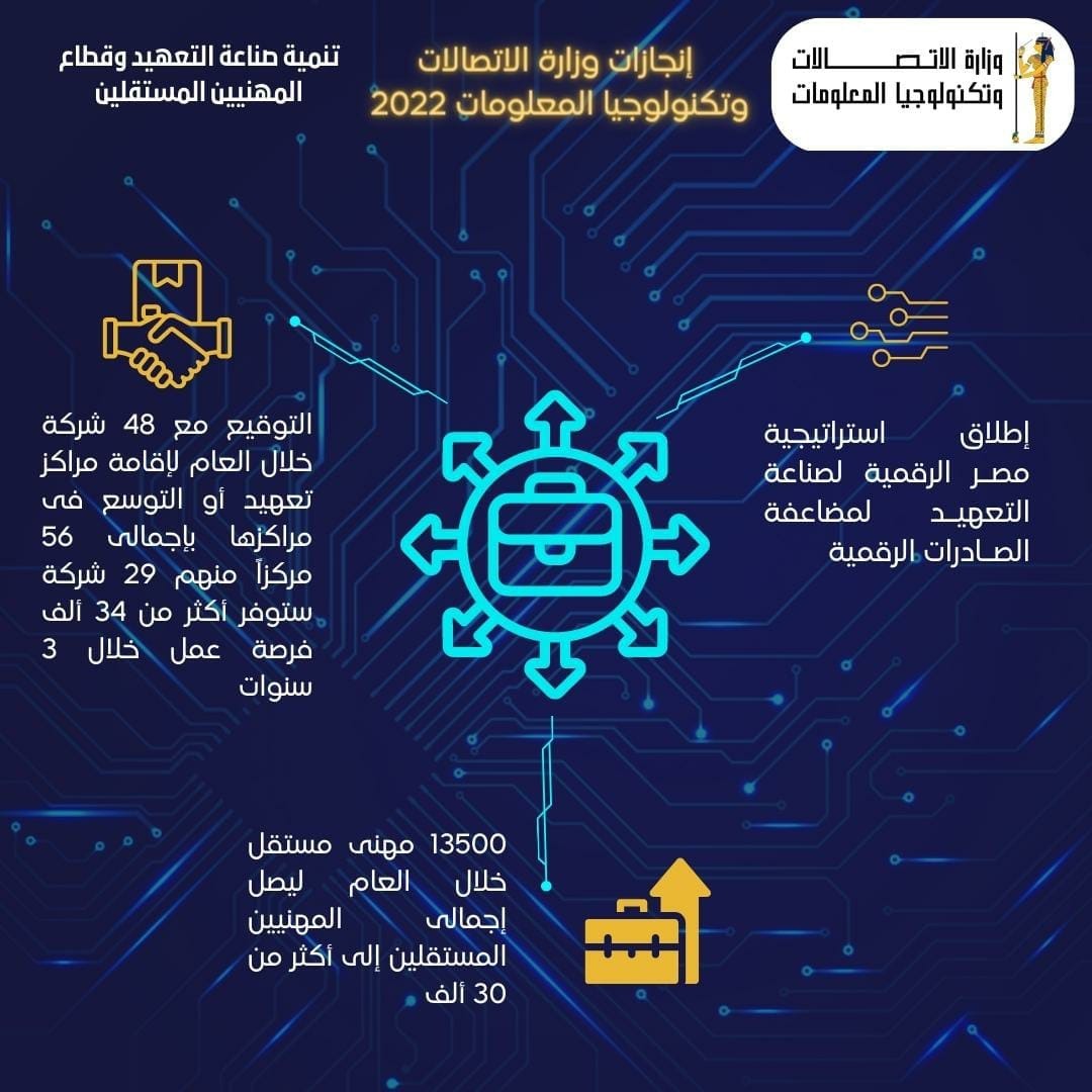 و أسفرت مبادرة مستقبلنا .. رقمى لبناء القدرات الرقمية فى مهارات العمل الحر إلى زيادة المهنيين المستقلين فى القطاع بعدد 13500 مهنى مستقل خلال 2022 ليصل الإجمالى إلى أكثر من 30 ألف مهنى مستقل.