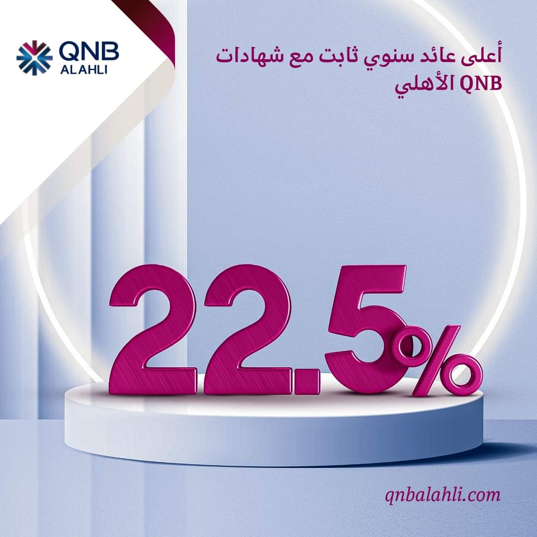 أعلن بنك QNB الأهلي عن إصداره شهادة ادخارية جديدة للأفراد لمدة سنة ونصف (ما يعادل 18 شهرا) بعائد سنوي يصل إلى 20% يصرف شهريا و22.5 % يصرف عند الاستحقاق، ويكون الحد الأدنى لربط الشهادة 1000 جنيه مصري ومضاعفاتها.و يكون العائد ثابت طوال مدة الشهادة ويختلف باختلاف دورية الصرف، ويحتسب العائد من تاريخ شراء الشهادة وتصدر للأفراد الطبيعيين، ولا يمكن استرداد الشهادة إلا بعد مرور 6 أشهر من تاريخ الشراء، كما يمكن الاقتراض بضمان الشهادة وبحد يصل إلى 95 % من قيمتها.