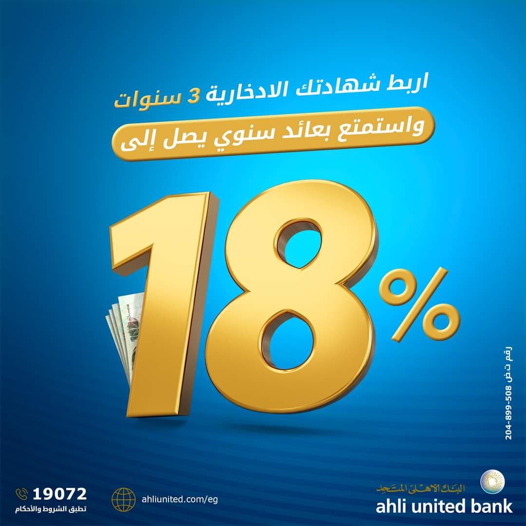 الصفحة الرئيسية أخبار“الأهلي المتحد” يطرح شهادة إدخارية بعائد 18%