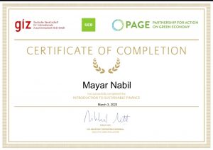 الصفحة الرئيسية بروفايلالمحللة المالية ميار حسن تحصل على شهادة التنمية المستدامة من الأمم المتحدة