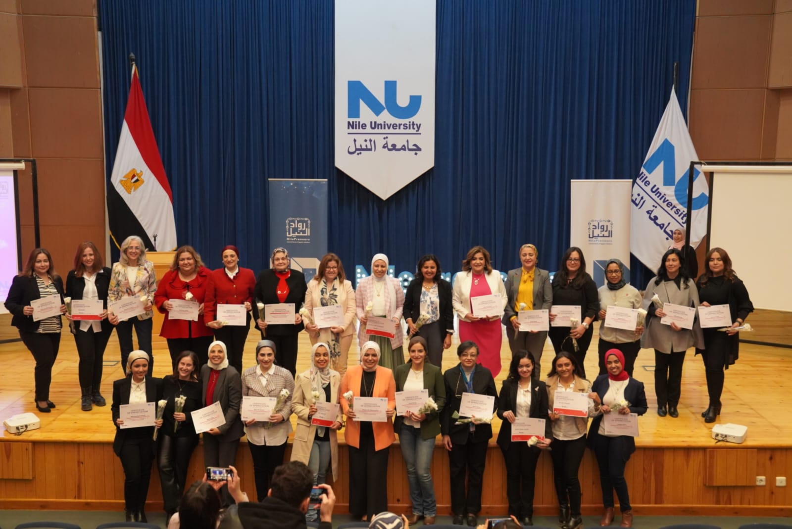 كرمت مبادرة رواد النيل إحدى مبادرات البنك المركزي المصري وتنفذها جامعة النيل الأهلية بالتعاون مع عدد من الجهات البنوك، أكثر من 30 قيادة نسائية في البنوك والجامعات المصرية، وذلك للدور البارز اللاتي قمن به لدعم المجتمع من خلال مواقعهن المختلفة.