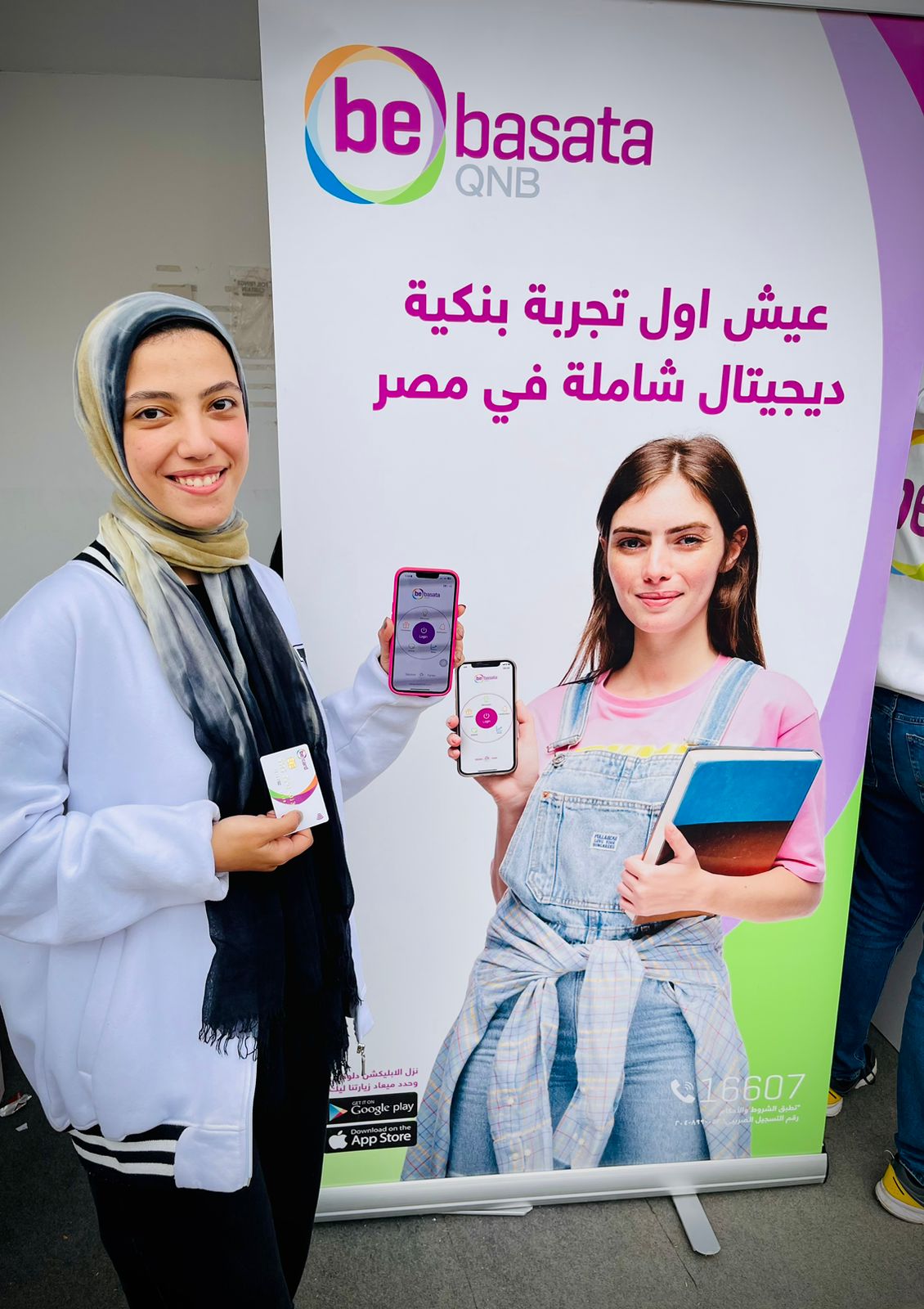 وجاءت مشاركة فريق QNB bebasata بهدف إطار التعريف وتوعية الطلاب بأساسيات الشمول المالي مع توضيح المزايا الخاصة بمنصة QNB bebasata كونها أول تجربة بنكية رقمية كاملة الخدمات في مصر حيث يستطيع الشباب فتح حساباتهم البنكية واستلام كارت الخصم المباشر وكذلك إتمام كافة العمليات المصرفية دون الحاجة لزيارة فروع البنك.
