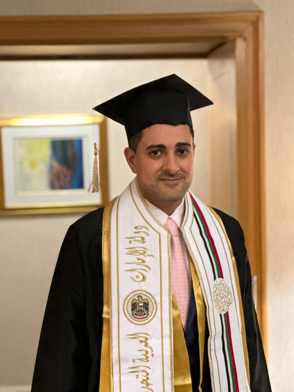 وأعرب المحيربي عن فخره واعتزازه بالحصول على شهادة الدكتوراة التي تأتي تقديرا لمسيرته المهنية والعملية، وأهدى هذا النجاح إلى مقام صاحب السمو الشيخ محمد بن زايد آل نهيان رئيس الدولة – حفظه الله-، مؤكدا مواصلة العمل لتعزيز مكانة الدولة اقتصاديا واستثماريا والمساهمة في نموها وتطورها.