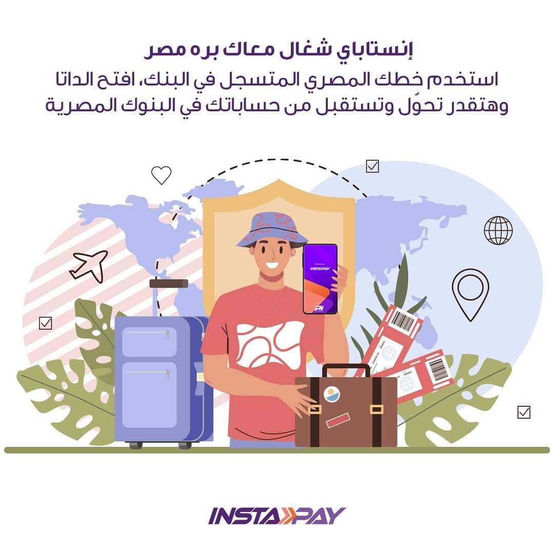 وقال التطبيق على صفحته على موقع التواصل الاجتماعي :” وانت مسافر برة مصر تقدر تسجّل في إنستاباي وتحول وتستقبل في أي وقت ، المهم انك تكون بتستخدم نفس رقم الموبايل المتسجّل في حسابك البنكي”.