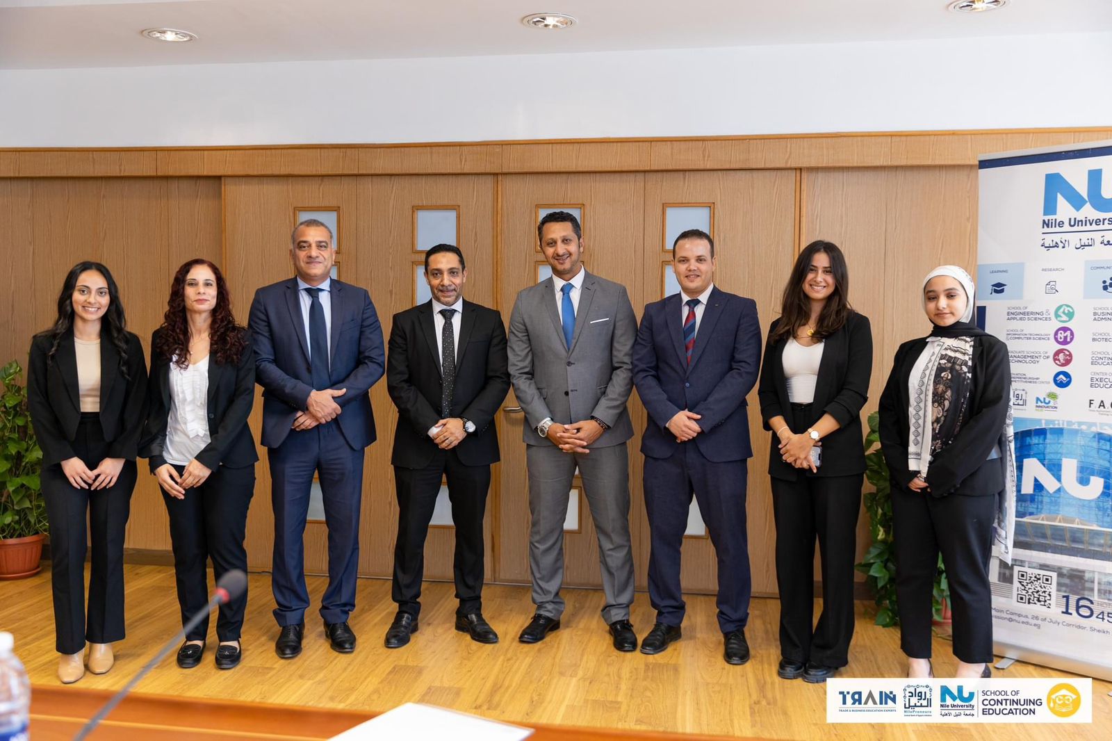 حضر توقيع البروتوكول الذي تم بمقر جامعة النيل الأهلية بمدينة الشيخ زايد، كل من الأستاذ الدكتور وائل عقل رئيس جامعة النيل الأهلية، والدكتورة نيفين عبد الخالق عميد كلية التعليم المستمر بالجامعة والدكتور تامر محمود المدير التنفيذي لشركة ترين للتدريب والدكتورة هبة لبيب المدير التنفيذي لمبادرة رواد النيل والمهندس محمد الكتاتني مدير مركز التميز للتصدير بمبادرة رواد النيل وعدد من أعضاء فريق العمل في كلا الجهتين.