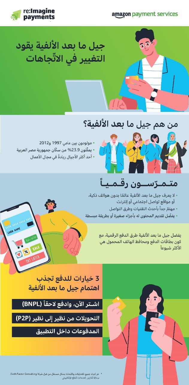 أجرت أمازون لخدمات الدفع الإلكتروني، الرائدة في معالجة عمليات الدفع الرقمي في الشرق الأوسط وشمال إفريقيا، بحثًا حول تفضيلات الإنفاق للأشخاص المولودين بين عامي 1997 و2012، والمعروفين باسم جيل ما بعد الألفية (Generation Z).