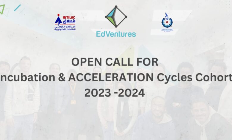 أعلنت EdVentures، شركة الاستثمار الجريء المصرية، عن فتح باب التسجيل لبرامج احتضان وتسريع نمو الشركات الناشئة العاملة بقطاع التقنية التعليمية في جمهورية مصر العربية حتى تاريخ 24 يونيو، تحت رعاية أكاديمية البحث العلمي وبرنامج انطلاق.