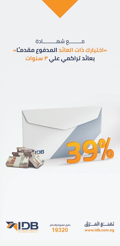 مع تسابق البنوك في مارثون كسب ودائع العملاء، ظهر قبل عدة أشهر بنك التنمية الصناعية IDB مفجرا مفاجأة من العيار الثقيل عندما طرح قبيل بدء عطلات عيد الفطر المبارك شهادات هي الأعلى من حيث العائد في السوق المصري وهي شهادة “إختيارك” ذات العائد التراكمي 3 سنوات بنسبة تصل إلى 39% تحصل مقدما وفي سابقة فريدة من نوعها في السوق المصرفي المصري.