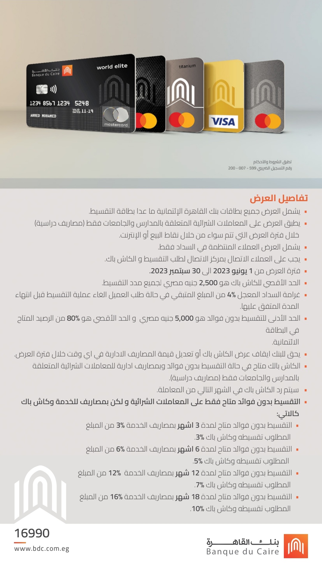 بمناسبة عيد الأضحى..بنك القاهرة يتيح تقسيط كافة المشتريات حتى 18% شهرا بدون فوائد