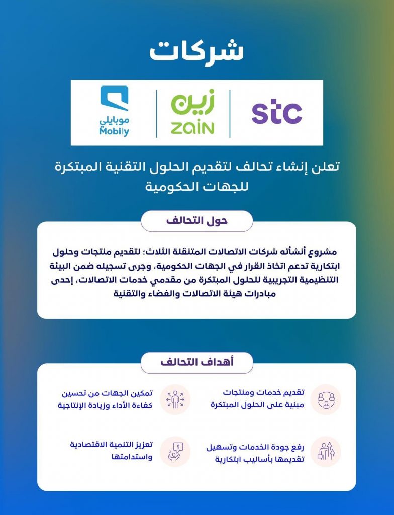 أعلنت شركات “stc” و”زين” و”موبايلي” عن إنشاء تحالف لتقديم خدمات ومنتجات مبتكرة لدعم اتخاذ القرار في الجهات الحكومية، حيث يعد التحالف مبادرة نوعية على مستوى المنطقة، كما جرى تسجيله ضمن البيئة التنظيمية التجريبية للحلول المبتكرة من مقدمي خدمات الاتصالات SandBox إحدى مبادرات هيئة الاتصالات والفضاء والتقنية.