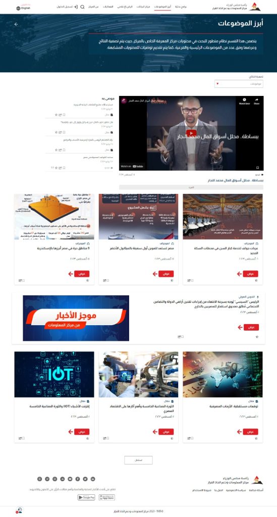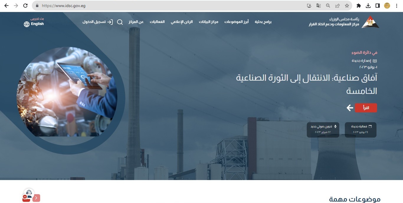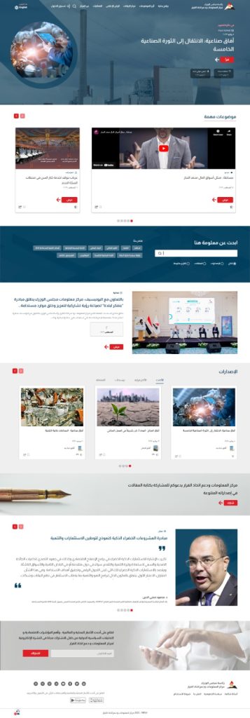 أطلق مركز المعلومات ودعم اتخاذ القرار بمجلس الوزراء المصري إصدارًا جديدًا من موقعه الإلكتروني، ليواصل تقديم خدماته الإخبارية والبحثية بشكل أكثر جاذبية، وبصورة أكثر تفاعلًا مع رغبات المستخدمين، وذلك باللغتين العربية والإنجليزية.