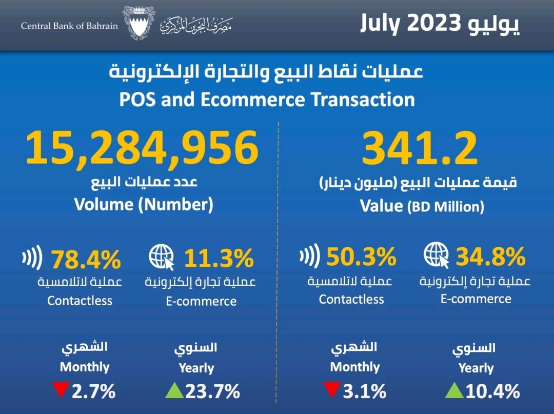 إحصائية بعمليات نقاط البيع وأنظمة المدفوعات بالبحرين خلال يوليو الماضي (إنفوجراف)