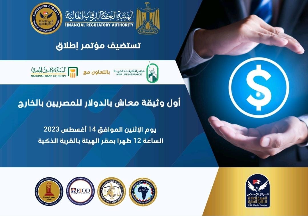 تعقد الهيئة العامة للرقابة المالية في مصر يوم الإثنين المقبل مؤتمرا صحفيا للإعلان عن اطلاق أول وثيقة معاش بالدولار للمصريين بالخارج ذلك بالتعاون بين شركة مصر لتأمينات الحياة والبنك الأهلي المصري.