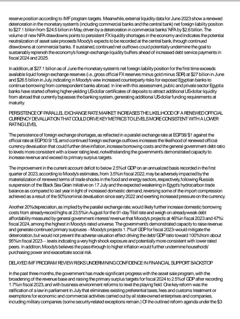 وتحدثت موديز في تقريرها عن مواجهة مصر لأزمة في معدلات السيولة بالنقد الأجنبي، وغيرها من النقاط التي تخص مؤشرات الاقتصاد المصري.