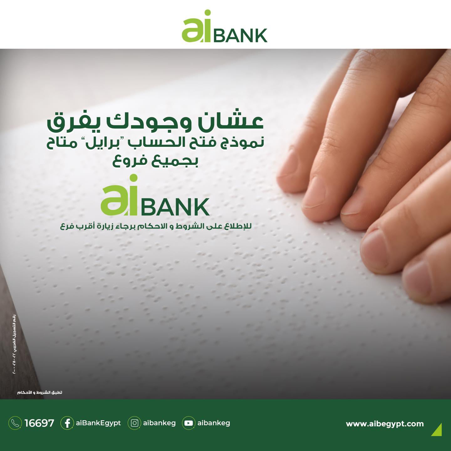 وقام aiBANK بإصدار أول بطاقات الخصم المباشر وبطاقات الدفع مقدماً بطريقة برايل بالتعاون مع “الشركة المصرية للبطاقات MDP ” وكذلك طباعة نماذج فتح الحساب ، كما قام أيضا بطباعة النشرة التعريفية للشمول المالي الصادرة من البنك المركزي المصري بطريقة برايل، مع توفير فيديو بخط كبير للعملاء من ذوى الهمم للتسهيل عليهم.