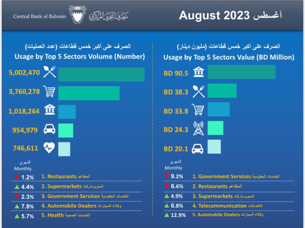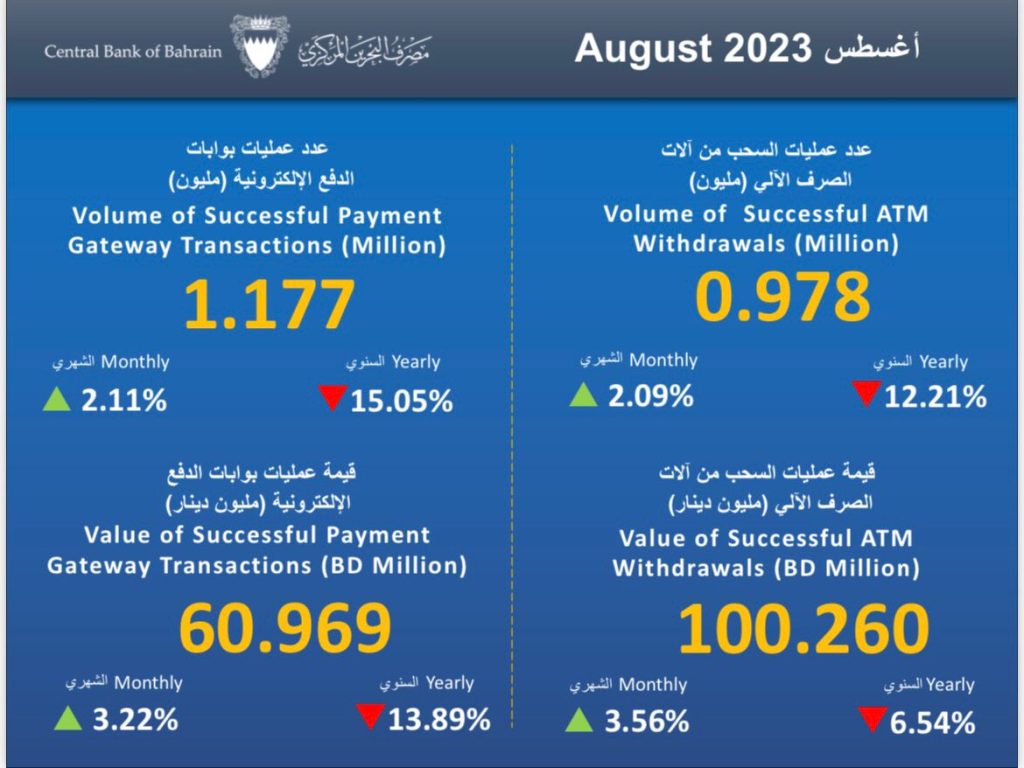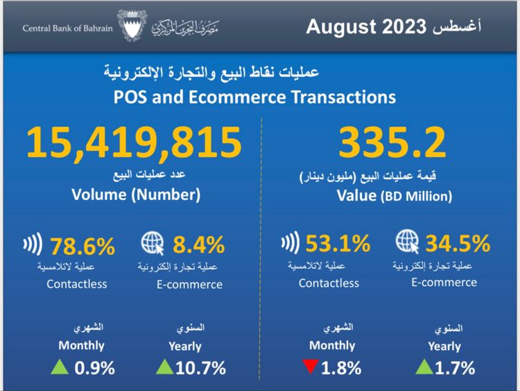 نشر البنك المركزي البحريني الاحصائية الإسبوعية لحركة المدفوعات والتجارة الإلكترونية ونقاط البيع التي تمت خلال شهر أغسطس الماضي والتي جاءت كتالي: