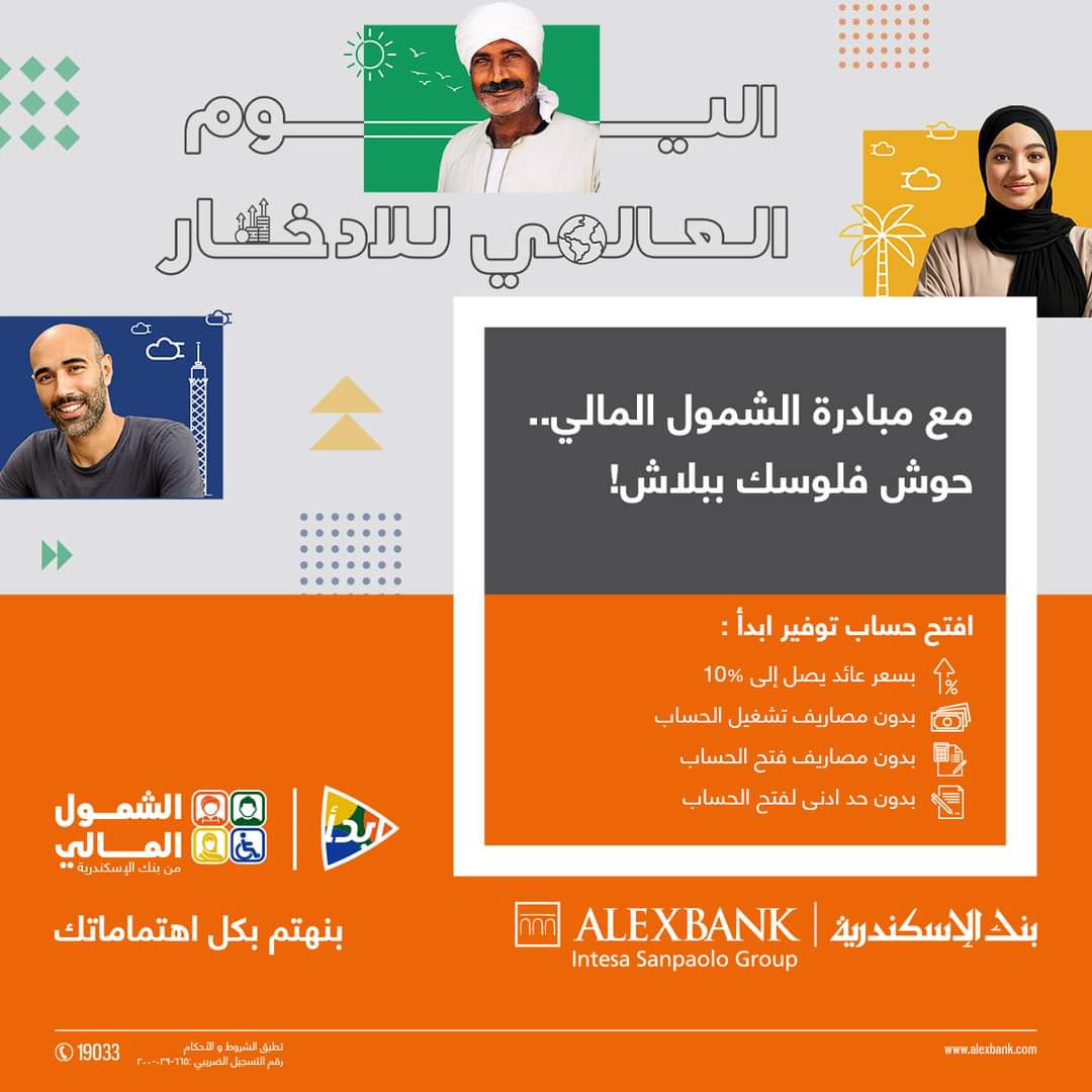 أعلن بنك الاسكندرية عن إتاحة عروض مع حساب توفير “ابدأ” ضمن مبادرة الشمول المالي لليوم العالمي للادخار تحت رعاية البنك المركزي المصري في الفترة من 15 اكتوبر حتى 31 اكتوبر الحالي.