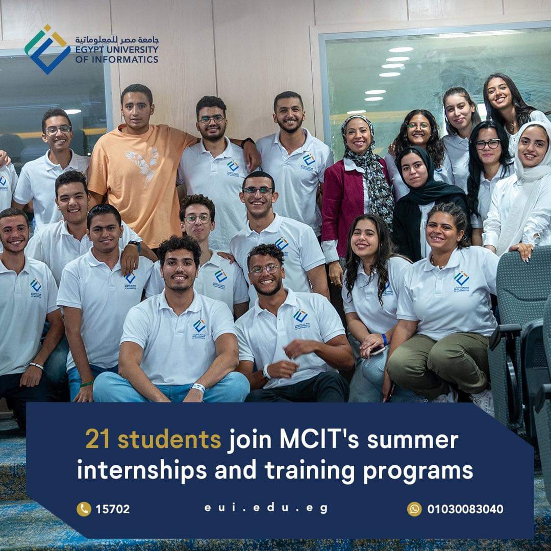 وتقدم 13 طالبًا من كليات جامعة مصر للمعلوماتية الأربع للاستفادة من برامج التدريب الصيفية وبرامج التدريب التابعة لوزارة الاتصالات وتكنولوجيا المعلومات، للتعرف على أساسيات التحول الرقمي .