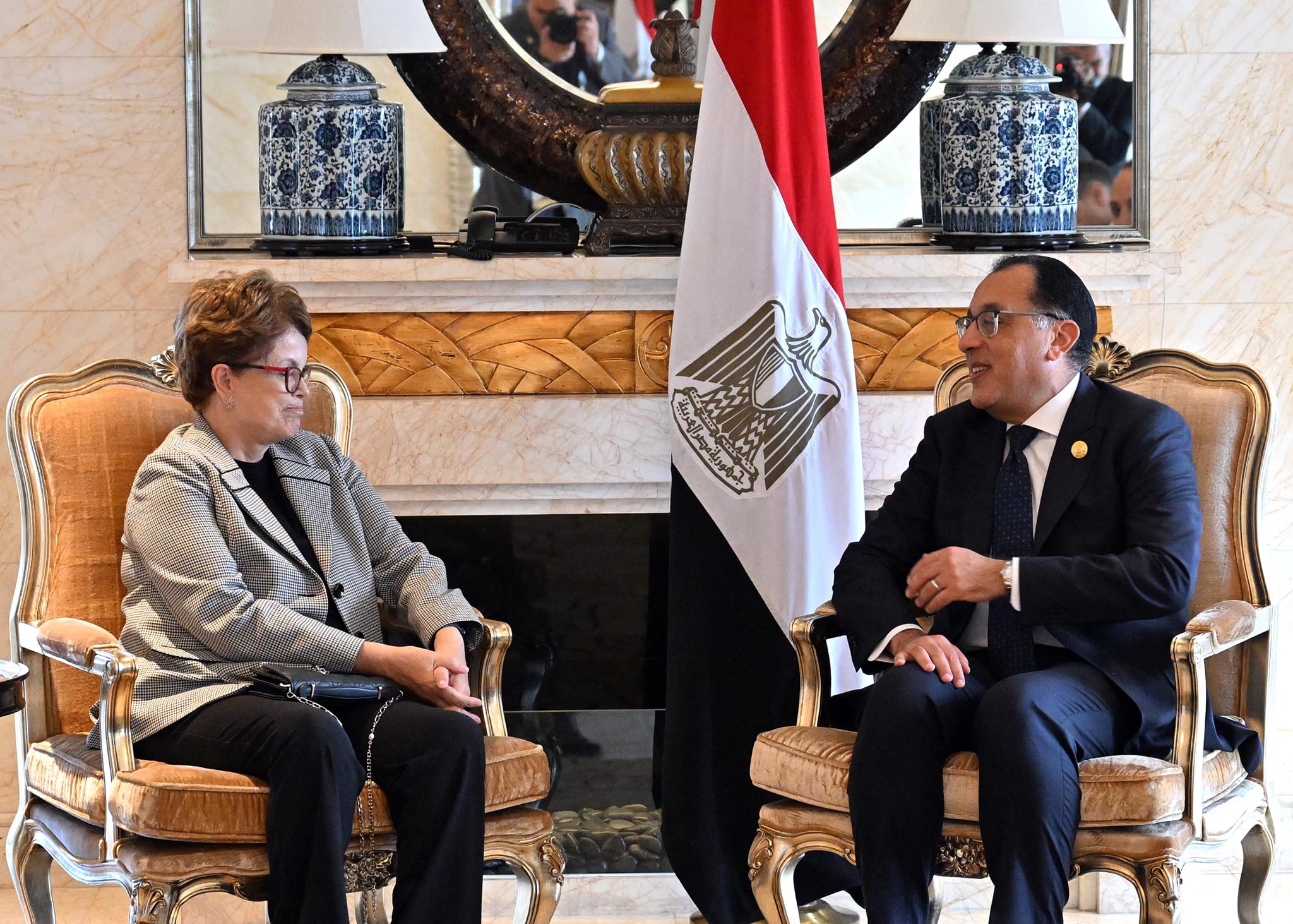 وأضاف البيان أن مدبولي أكد خلال لقاء مع ديلما روسيف رئيسة البنك على هامش الدورة الثالثة لمنتدى دول مبادرة الحزام والطريق أن مصر ستكون عضوا نشيطا وفعالا في البنك موضحا أنه يجري إعداد خطة واستراتيجية لتحديد أوجه التعاون مع تجمع بريكس والبنك التابع له.