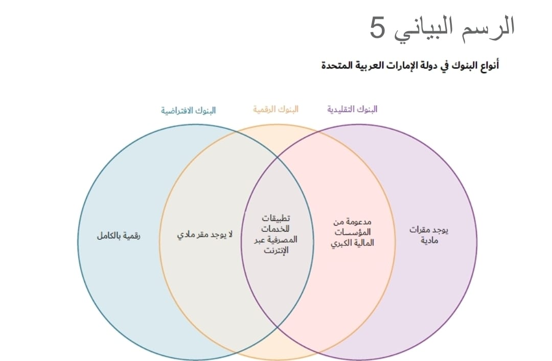 تستفيد معظم البنوك الافتراضية في دولة الإمارات من البنوك التقليدية التي استثمرت فيها أو دخلت في شراكة معها لتتيح لعملائها إمكانية الوصول إلى خدمات البنوك الافتراضية (انظر الرسم البياني 5). ساعد هذا في تعزيز مصداقية البنوك الافتراضية وجعلها في متناول العملاء بسهولة أكبر.