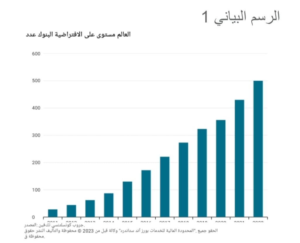 بحسب “ستاتسيا”، بلغ عدد عملاء البنوك الافتراضية في جميع أنحاء العالم نحو 188 مليوناً في عام 2022، مرتفعاً من نحو 19 مليوناً في عام 2017. ومن المرجح أن يتجاوز هذا الرقم 350 مليوناً بحلول عام 2026. ورافق الارتفاع في أعداد العملاء زيادة في عدد البنوك الافتراضية إلى أكثر من 500 في عام 2022 (انظر الرسم البياني 1).