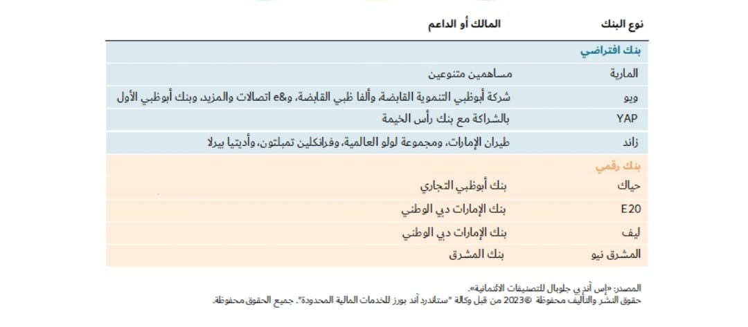 على مدى السنوات القليلة الماضية، شهدنا ظهور البنوك الافتراضية وزيادة في الخدمات الرقمية التي تقدمها البنوك التقليدية في دولة الإمارات، وتحاول البنوك الافتراضية جذب عملاء البنوك التقليدية من خلال تقديم المنتجات والخدمات برسوم أقل. وتدعم البيئة التنظيمية للتكنولوجيا المالية في دولة الإمارات إلى حد ما ظهور البنوك الافتراضية وذلك وفقا لدراسة ل ستاندرد أند بورز جلوبال.