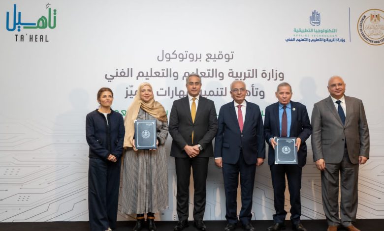 شهد الدكتور رضا حجازي وزير التربية والتعليم والتعليم الفني و حسن شحاتة وزير العمل توقيع بروتوكول تعاون بين وزارة التربية والتعليم والتعليم الفني وشركة “تأهيل لتنمية مهارات التميز”، الذراع المتخصص فى التعليم الفني لمجموعة نهضة مصر، بهدف تدريب ٥٠٠ طالب سنويًا من طلاب التعليم الفني في السنة الدراسية الأخيرة من التعليم القائم على منظومة الجدارات بغرض إمدادهم بمختلف المهارات الفنية والتوظيفية التي تمكنهم من تلبية احتياجات سوق العمل المحلي والدولي.