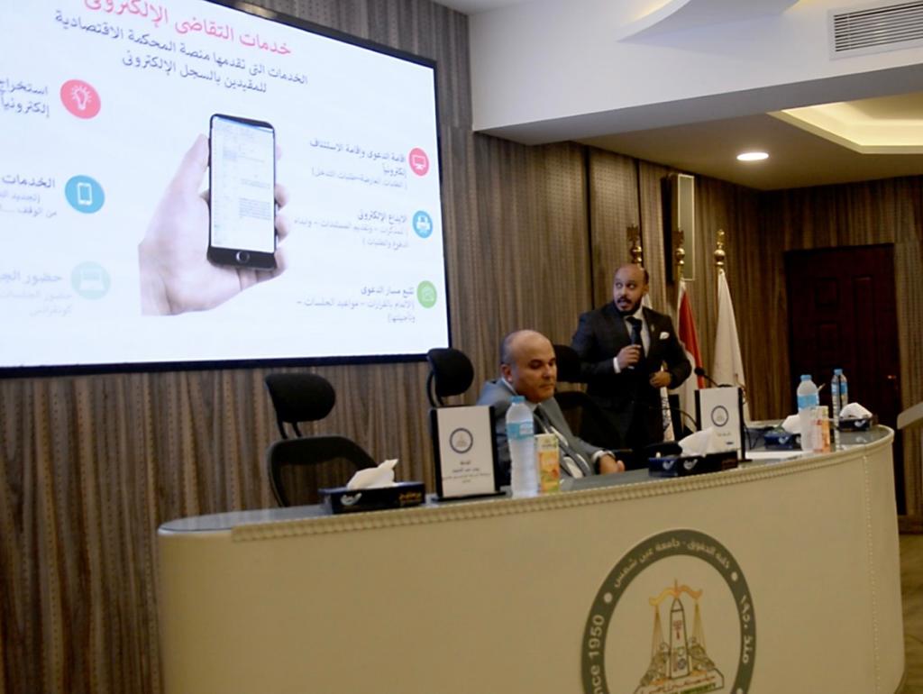 واوضح محمد ممدوح ان تطبيق نظام التقاضى الالكترونى يبدا من اقامة الدعاوى امام المحكمة ودفع الرسوم من خلال البطاقات الائتمانية, مرورا بحضور جلسات المحكمة عن بعد والتي تقام عبر تقنية الفيديو كونفرس. ثم الحصول على كافة القرارات من خلال البريد الالكترونى. كذلك الحصول على حكم لتلك الدعاوى دون الحاجه الى الذهاب الى مقر المحكمة الاقتصادية. فضلا عن رفع جميع المستندات وابداء الدفاع الكترونياً وصولاً الى الحصول على الحكم الكترونياً دون الحاجه الى الذهاب الى المحكمة.
