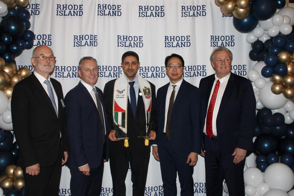 وتحدثت خلال الحفل اليزابيث تانر وزيرة التجارة في ولاية رود آيلاند التي رحبت بالحضور، وقامت بتسليم الجائزة إلى الدكتور خليفة سيف المحيربي.