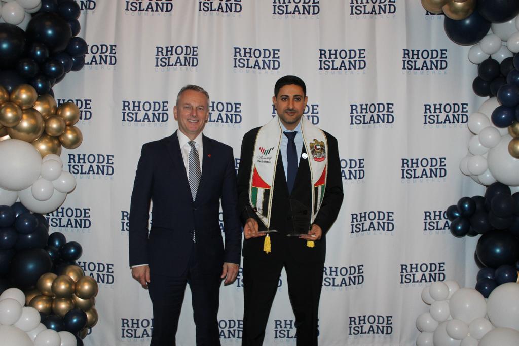 جاء ذلك خلال حفل جوائز جو جلوبال 2023 العالمية التي أقيمت في ولاية رود آيلاند الأمريكية من تنظيم وزارة تجارة ولاية رود آيلاند ومجلس التجارة العالمي، وبحضور جايمس جولسن نائب وزير التجارة الأمريكي و اليزابيث تانر وزيرة التجارة في ولاية رود آيلاند و أكثر من 1200 شخصية عالمية واقتصادية وتجارية وعدد من السفراء وممثلي الدول في الولايات المتحدة الأمريكية.