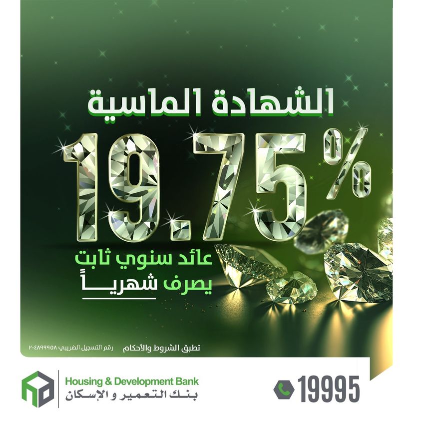 قلب بنك التعمير والإسكان HDB موازين المنافسة في سوق الشهادات الإدخارية في مصر، بعدما أعلن اليوم عن طرح شهادة ماسية ثلاثية جديدة هي الأعلي في السوق بعائد ثابت يصل إلى 19.75% سنويا لمدة 3 سنوات، يصرف شهريا.