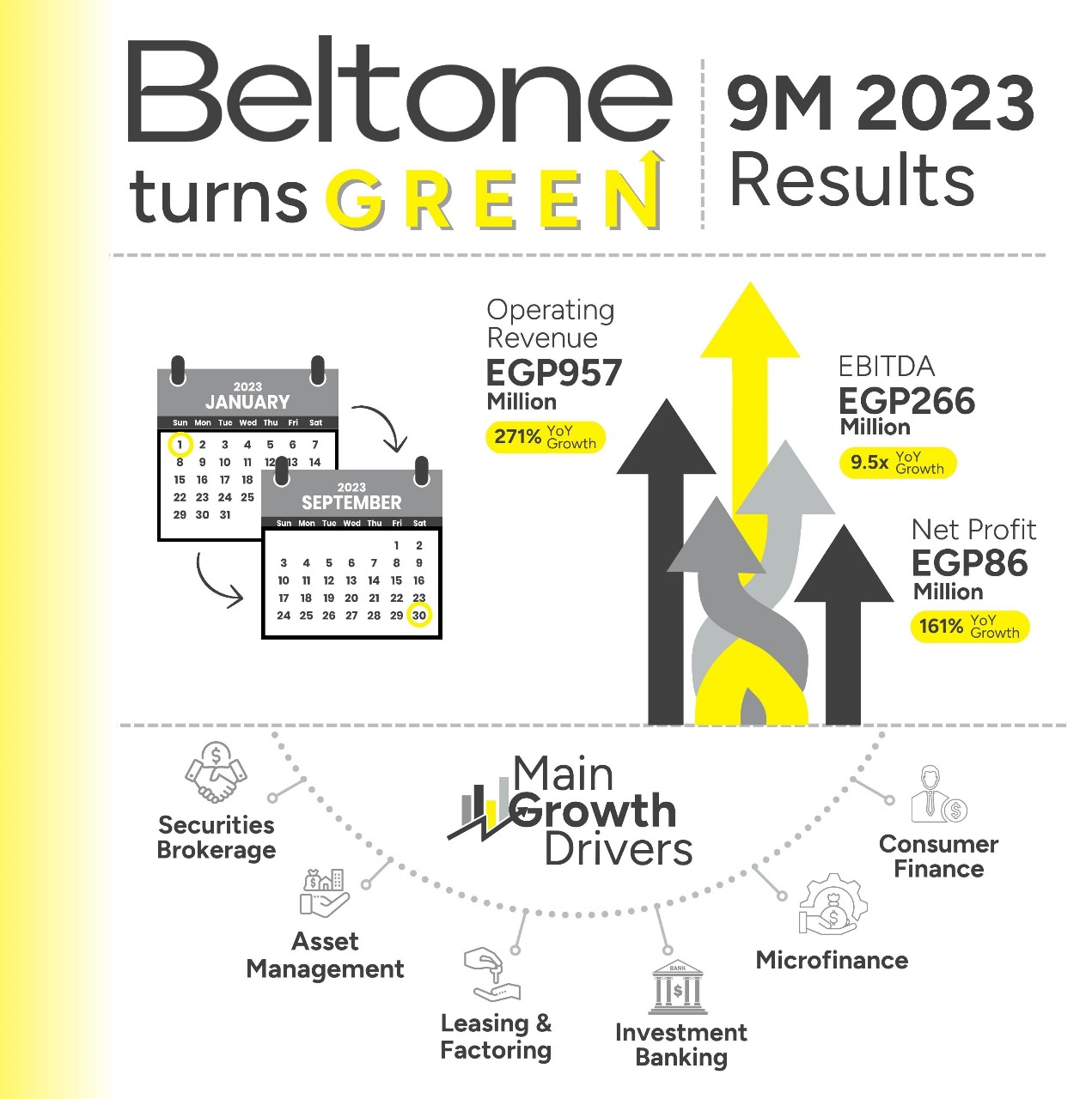 أعلنت شركة بلتون المالية القابضة (“بلتون” أو “الشركة”) عن تحقيق إيرادات تشغيل قياسية بقيمة 957 مليون جنية خلال الفترة المالية المنتهية في 30 سبتمبر 2023، بزيادة قدرها 271% على أساس سنوي، للنمو القوي في إيرادات الأنشطة المالية غير المصرفية، مدعومه بإيرادات بنك الإستثمار.