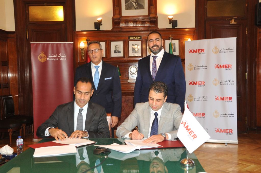 وقع بنك مصر بروتوكولى تعاون في مجالى الدفع والتحصيل الإلكتروني والتمويل العقاري مع مجموعة شركات عامر القابضة (عامر جروب) وشركة قسطلي هومز للاستثمار العقاري.