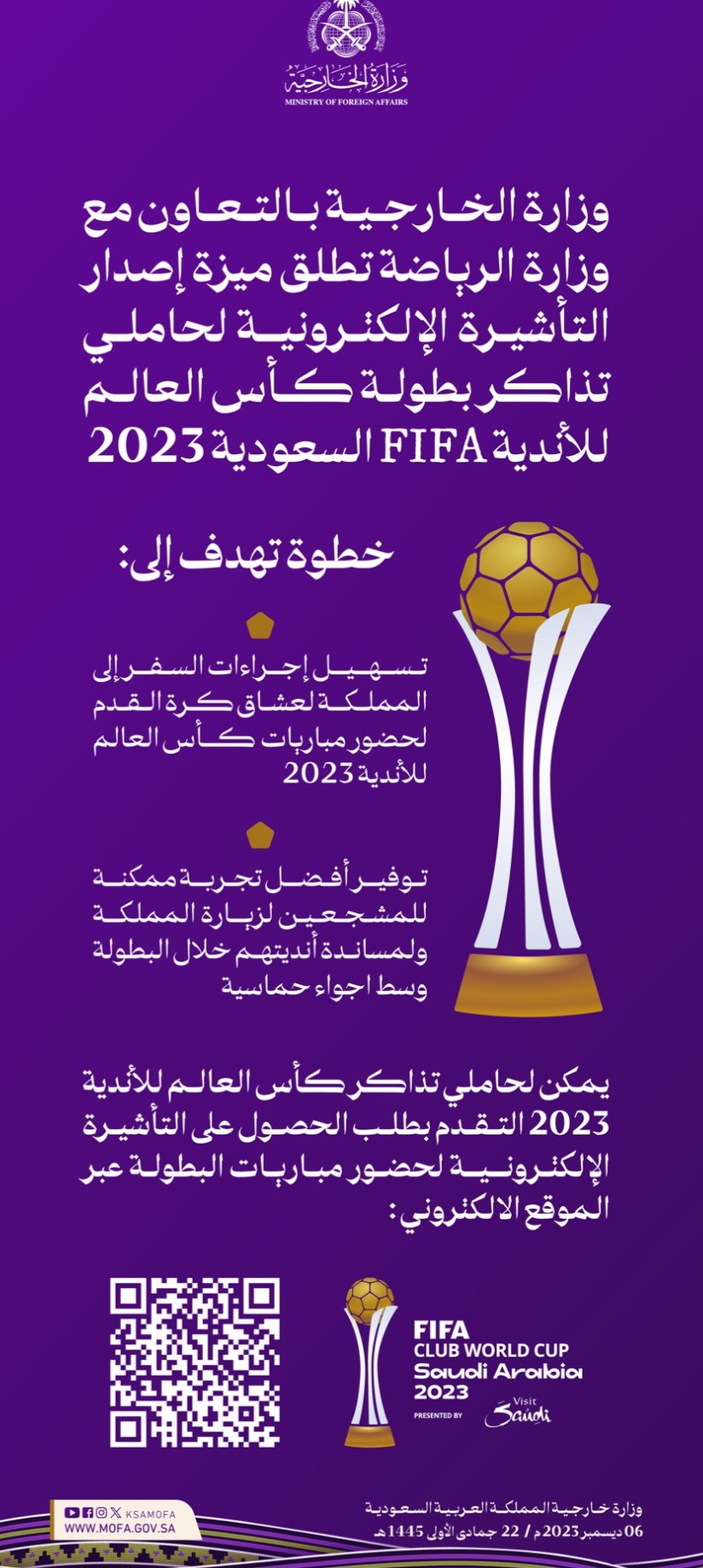 الصفحة الرئيسية السعودية«السعودية» تتيح إصدار التأشيرة الإلكترونية لحاملي تذاكر كأس العالم للأندية