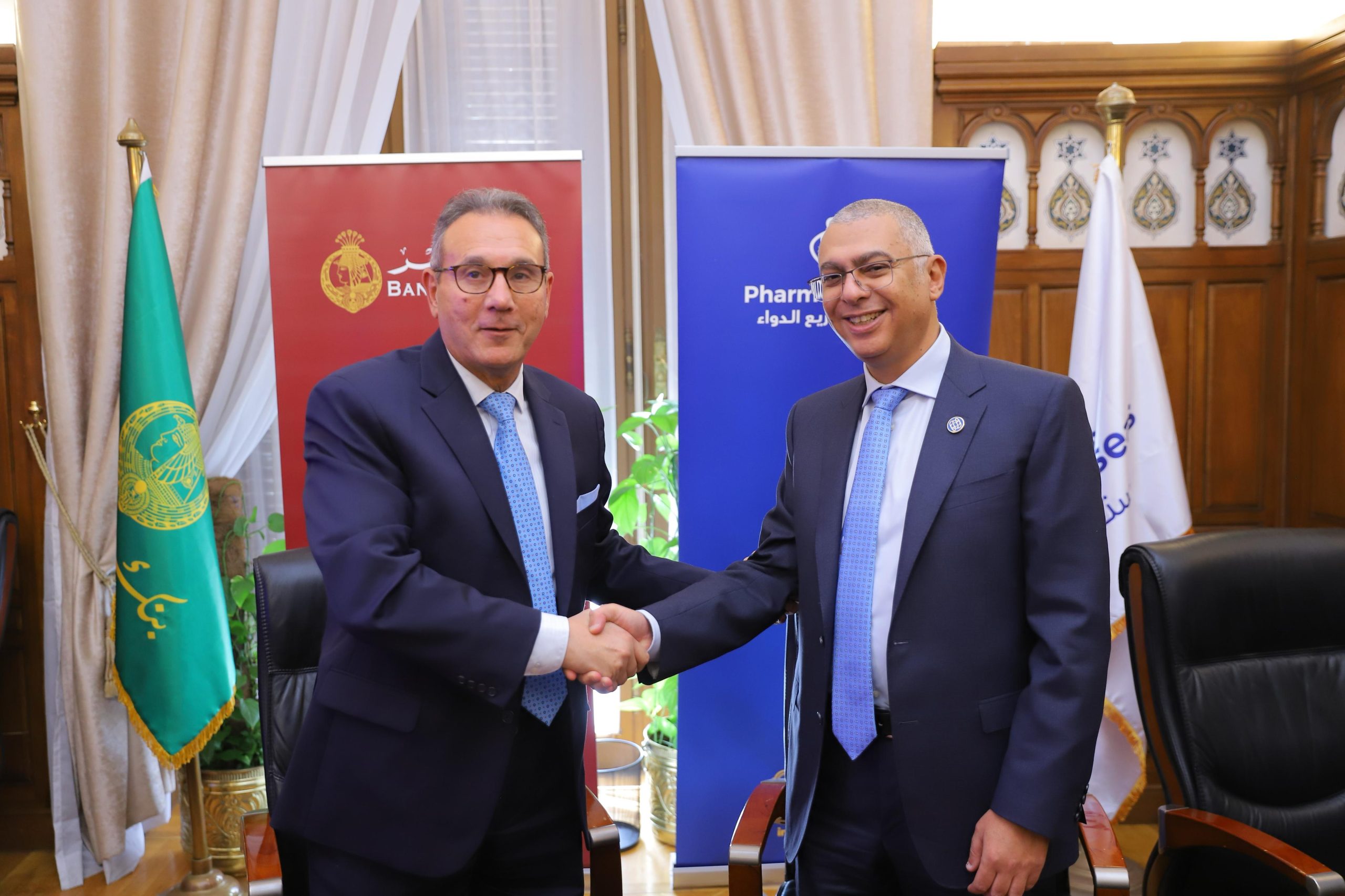 و قام بتوقيع البروتوكول محمد الإتربي – رئيس مجلس ادارة بنك مصر مع الدكتور مهاب جزارين- رئيس مجلس إدارة شركة فارما اوفرسيز لتجارة و توزيع الادوية.