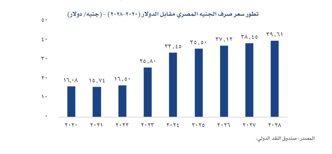 وأضافت وفق تقديرات صندوق النقد الدولي فمن المتوقع تسجيل سعر صرف الجنيه مقابل الدولار لنحو 39.61 جنيها في 2028.