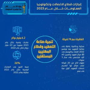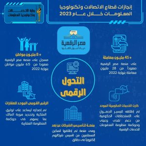 وفيما يلى أبرز ما تم إنجازه فى قطاع الاتصالات وتكنولوجيا المعلومات خلال عام 2023:-