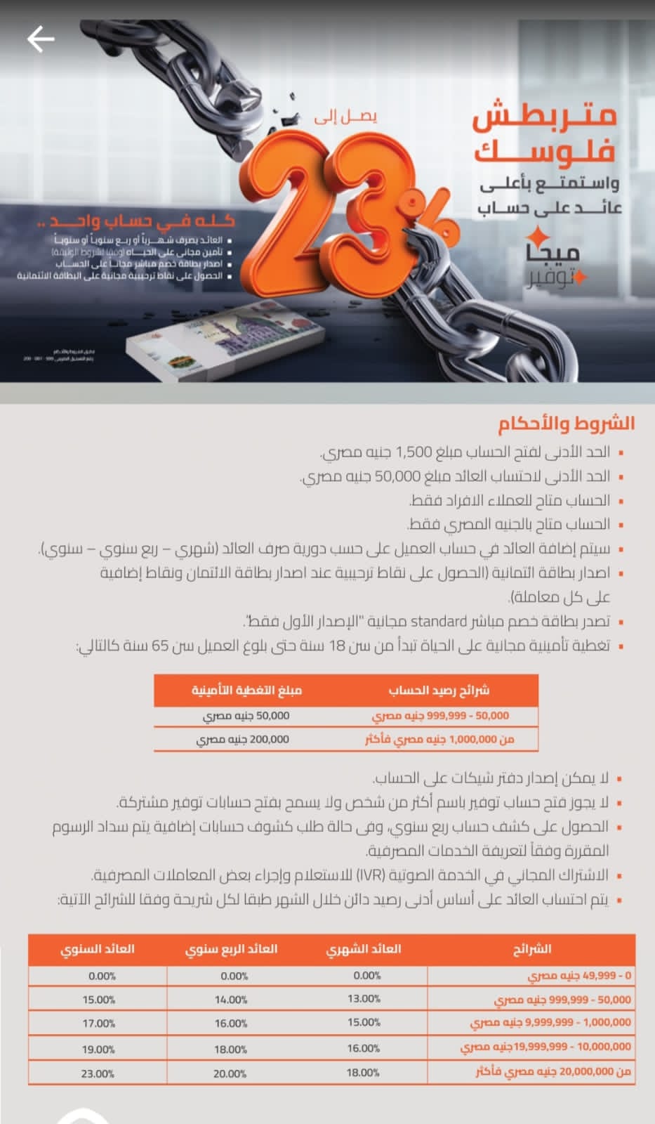 . الحد الأدنى لاحتساب العائد مبلغ 50,000 جنيه مصري.