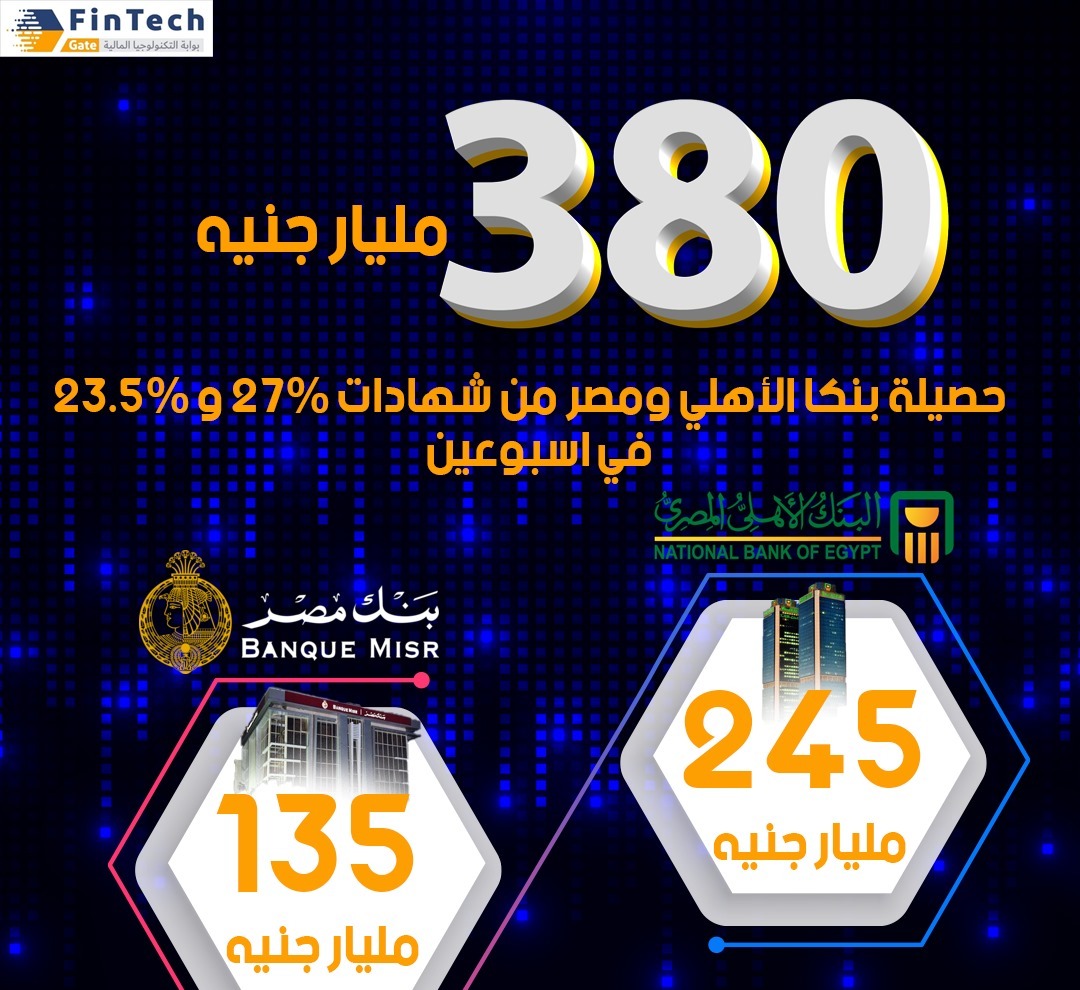 بلغت حصيلة بنكا الأهلي المصري ومصر من شهادات من شهادات الـ 27% والـ 23.5% ومدتها سنة نحو 380 مليار جنيه.