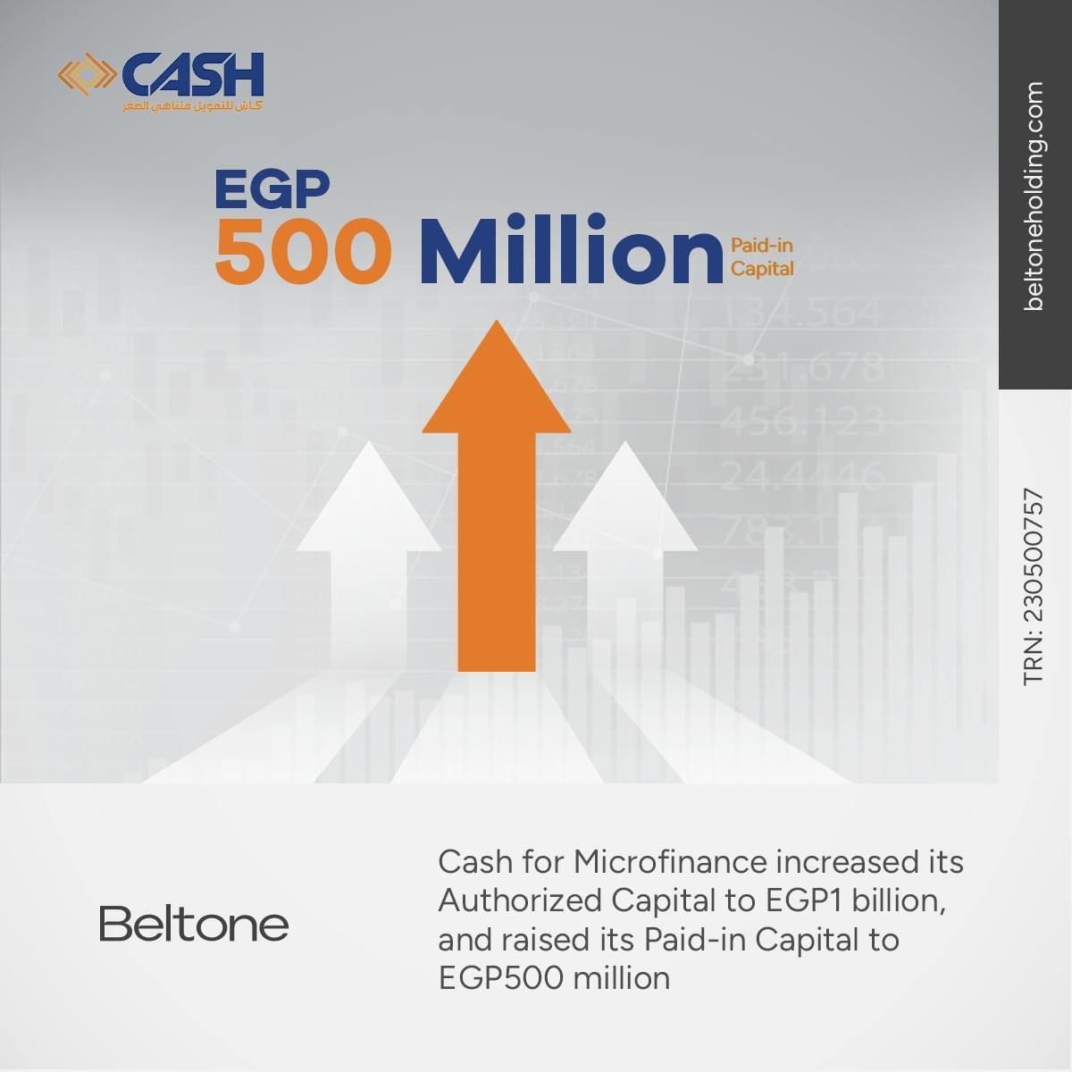 إنتهت شركة بلتون القابضة من زيادة رأس المال المدفوع لشركة «كاش للتمويل متناهي الصغر» المملوكة لها إلى 500 مليون جنيه والمرخص به إلى مليار جنيه.